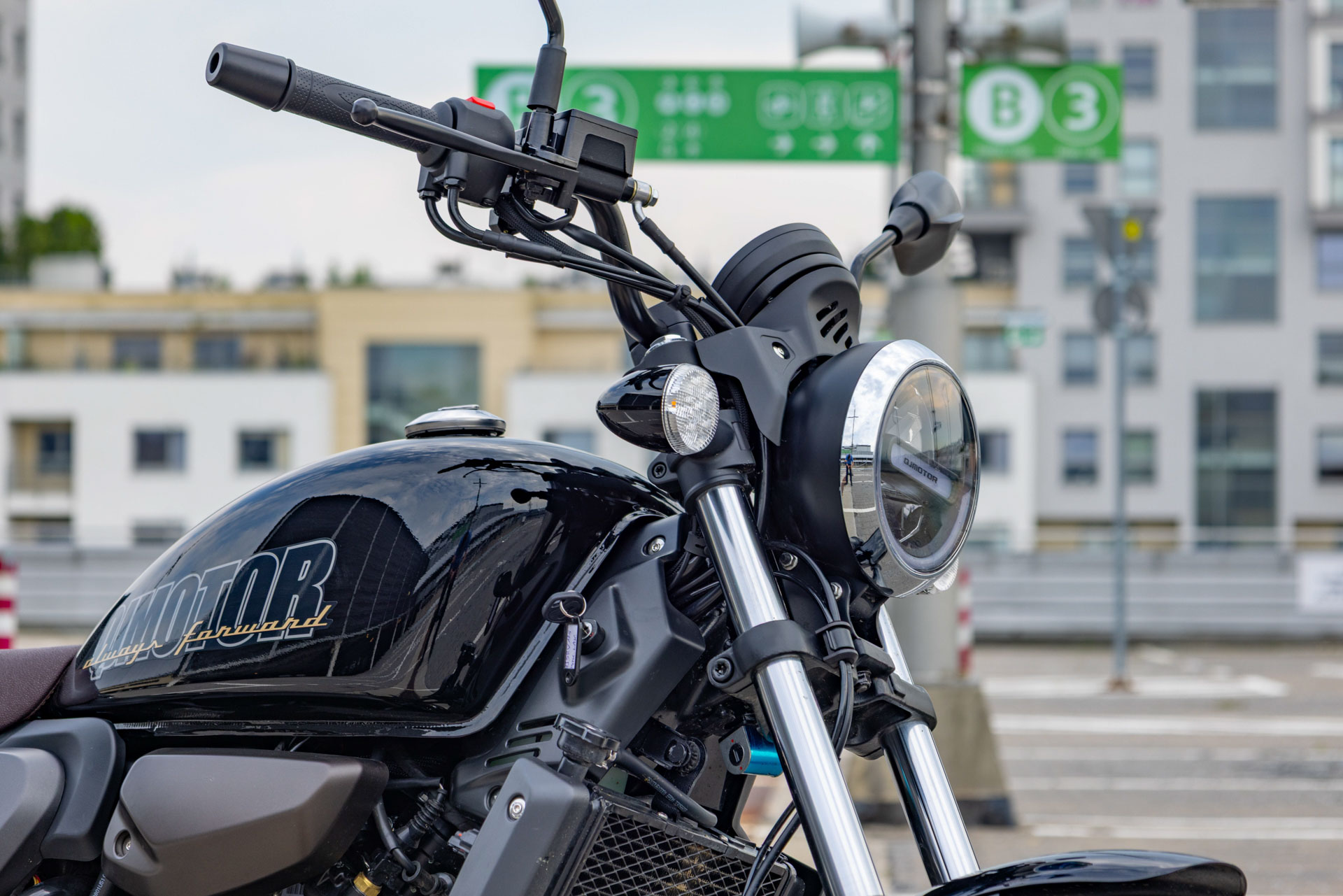 Klasyczny, okrągły reflektor w technologii LED nadaje oryginalnego wyglądu cruisera SRV 125.